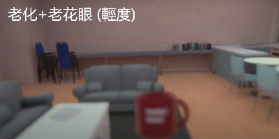 這是一個與輔仁大學老人學程合作的老化體驗項目,旨在虛擬教室中提供逼真的模擬效果。通過這個互動作品,使用者可以體驗老年人常見的眼病變狀況,如青光眼、黃斑部病變和老花眼等。虛擬環境中的教室精確地重現了這些視覺退化的效果,讓使用者真實感受到老年人眼睛退化的挑戰。強大的擬真建模與模擬技術,使這一體驗生動而具教育意義,提升了對老年人視覺健康問題的認識和理解。